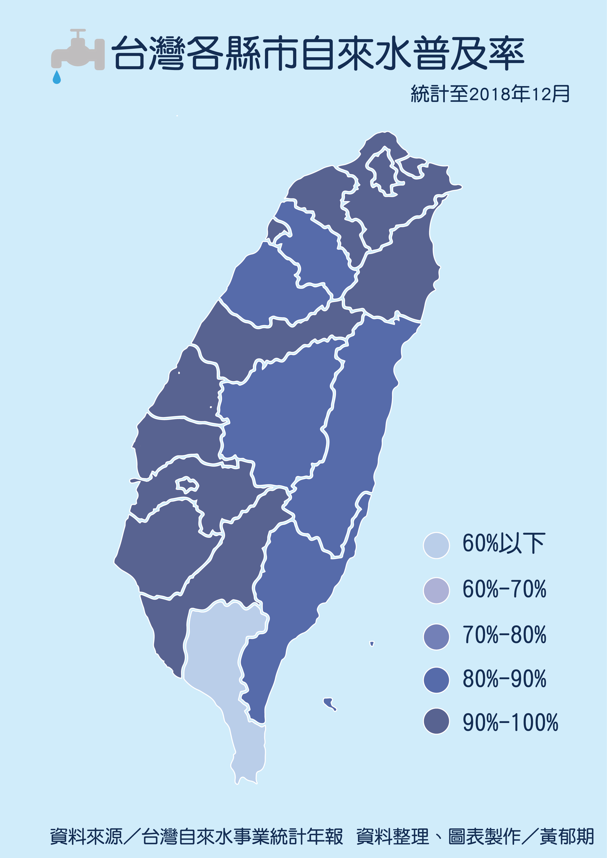 台灣自來水公司(以下簡稱自來水公司)每半年統計全台各縣市自來水供水普及率,長久以來,屏東縣自來水普及率遠低於其他縣市。