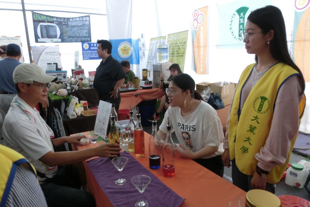 大葉大學食品暨應用生物科技學系學生正在向民眾介紹花茶以及調茶的相關知識。 圖/黃郁期攝