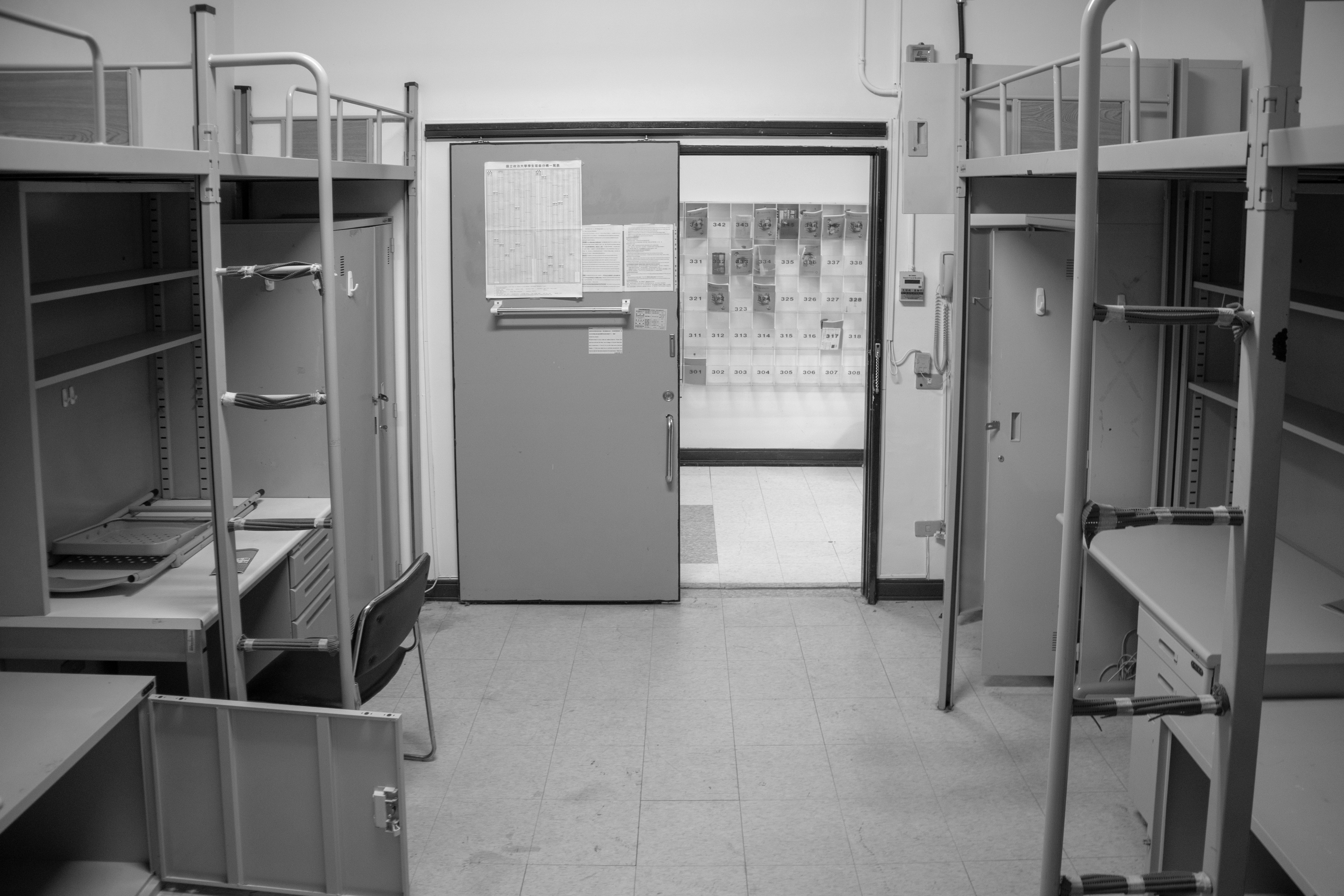 「我的鐵床欄杆都是生鏽的,每次爬上去時都要先站在椅子上,才不會接觸到鏽斑。」居住於自強九舍的社會一陳欣汝解釋,為了避免觸及鐵鏽,上床前都得經歷一番波折。她認為,木製寢具是宿舍的必要條件,但自九卻是鐵床鐵椅,「入學前看到學校網頁的莊一圖片,都是木製寢具,沒想到自九卻沒有。」讓她頗失望。